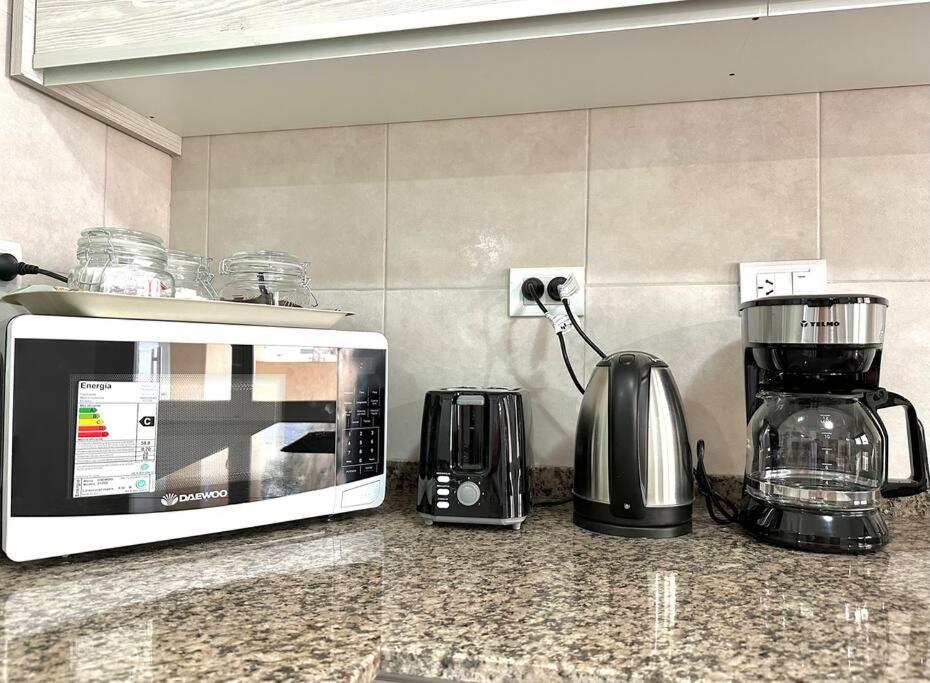 El apartamento incluye 2 dormitorios y una cocina con nevera y microondas, además de cafetera. Hay toallas y ropa de cama en el apartamento.