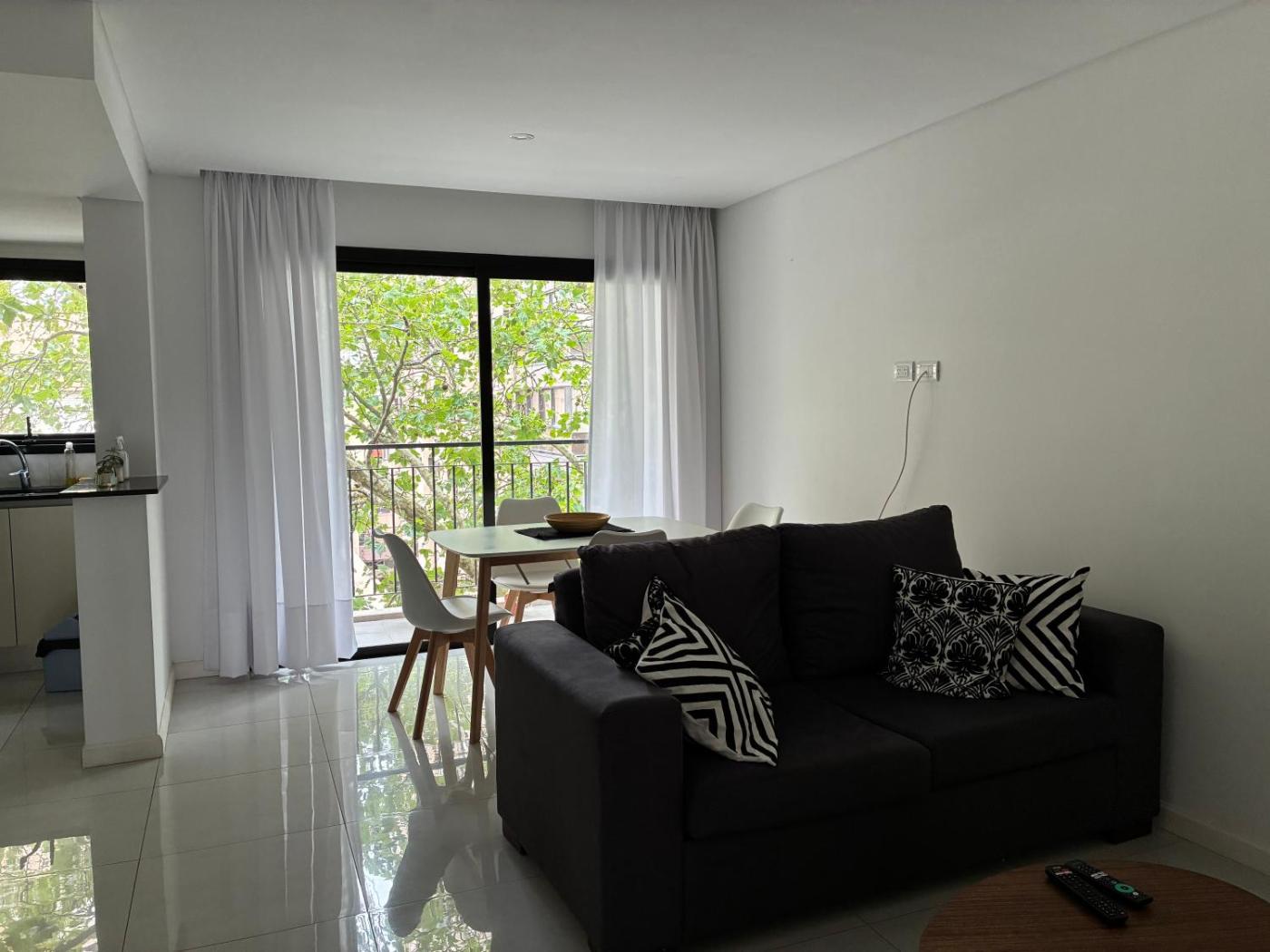 Este apartamento ofrece acceso directo a un balcón y cuenta con 1 dormitorio y cocina totalmente equipada.